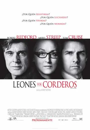 Hagamos un poco de historia. En 2002, Michael Moore ganaba el Oscar por su documental Bowling for Columbine. En esa oportunidad, se despachaba con un polémico discurso antibelicista y anti-Bush. Un año más tarde, en respuesta a Fahrenheit 9/11, los mismos que le entregaron el Oscar lo ridiculizaban en una poco inocente animación. Hollywood se expresaba, más allá de las voces de Tim Robbins, Susan Sarandon, Sean Penn y otros actores de discurso pacifista, a favor del accionar bélico de Bush. 2007 ha sido un año atípico. En medio de tanta película de corte fantástico y de tanto “horror movie” (si se repasa la historia del cine, se observa con claridad que los momentos en que la industria promueve un cine alejado de la realidad y cercano a sentimientos primarios como el temor, es en respuesta a una realidad que “no debe ser vista”, el público elige darle vuelta la cara a una realidad difícil, sumergiéndose en este tipo de películas, a veces mero escapismo, otras con cierto tono alegórico), se ha levantado un frente claramente opositor. Este frente puede surgir en los márgenes de la industria, como Un corazón invencible (Winterbottom es un cineasta británico que, cuando trabaja en Norteamérica, dirige películas independientes) o Redacted (De Palma es el símbolo del director estadounidense autoexiliado, prácticamente expulsado de su país, de su industria). O bien puede surgir del corazón mismo de Hollywood, caso del cual Leones por corderos es, hasta ahora, el exponente más claro. Estrellas de la talla de Robert Redford, Meryl Streep y Tom Cruise se han reunido en una película netamente programática. Leones por corderos es más una clase de historia contemporánea que una película con valores estéticos genuinos. Parte de dos puntos de vista poco convencionales, para construir un discurso unívoco y que deja poco para pensar o debatir. El clima es devastador, el accionar bélico no se detiene, y el título alude a los “leones dirigidos por corderos”, es decir, a los soldados que responden a las órdenes de políticos cómodamente sentados en sus escritorios. En medio de esto, una periodista se plantea el papel de la prensa (¿debe o no debe informar? ¿Divulgar la noticia es responder a los intereses del gobierno? ¿Qué papel ha jugado frente a la guerra?) mientras discute con un soberbio senador (soberbiamente interpretado por Cruise), y un profesor le enseña a un joven el valor de comprometerse con sus ideas, mientras dos de sus alumnos en el frente de batalla, son víctimas de su propio compromiso. El guión no deja de abordar ninguna de las posiciones colaterales al conflicto bélico, y con ello construye un panfleto progresista, pacifista y, esencialmente, demócrata. Por supuesto, uno comulga con estas ideas, qué duda cabe que es el discurso más razonable y genuino frente al siniestro accionar del republicano Bush.