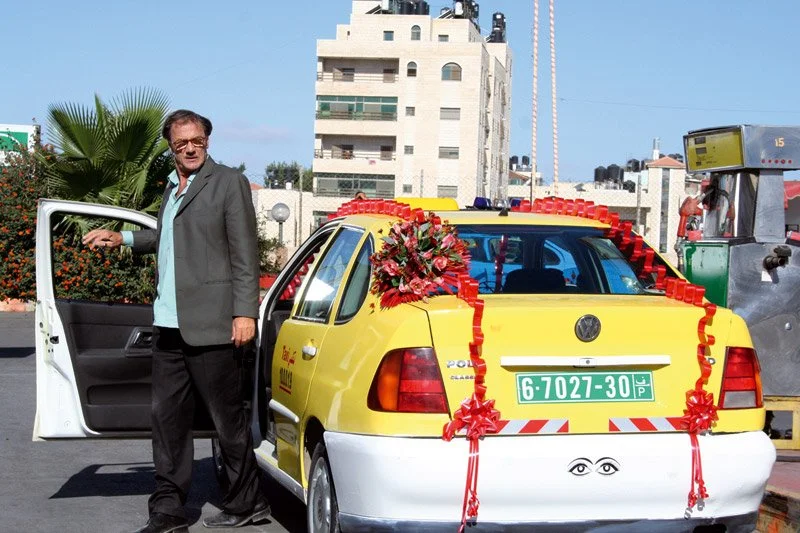 Un hombre, juez palestino, que por la coyuntura económica del país trabaja como taxista.