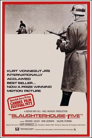 Podríamos decir que Matadero cinco es la historia de Billy Pilgrim, un tipo bastante mediocre e insulso que tras sobrevivir a un aparatoso accidente de aviación, contacta con los Tralfamadorianos, unos extraños seres de la cuarta dimensión que lo llevan a su planeta, lo meten en un zoo galáctico y le obligan a practicar sexo con una atractiva starlet de Hollywood. Pero esto sería como decir que 2001: Una odisea del espacio (1968) es la historia de una nave espacial a la que se le estropea el GPS, con ello solo estamos desdibujando muchos de los perfiles y texturas de una obra mucho más compleja. Aunque la trama posee ciertos elementos pulps, Matadero cinco es básicamente una película de ciencia ficción existencialista. Y una crítica a la sinrazón de la guerra, y una sátira de la institución familiar americana, y un arriesgado experimento fílmico, y muchas cosas más, porque la cinta funciona a tantos niveles que a uno le resulta difícil contabilizarlos. Los Tralfamadorianos tienen una concepción espaciotemporal muy distinta a la de los humanos y contactar con ellos puede causar su efecto. Prueba de ello es que Billy Pilgrim comienza a viajar en el tiempo y el espacio de forma descontrolada, saltando atrás y adelante en diversos momentos de su vida. La película se centra en el efecto que causa en el protagonista este hecho fantástico, y no en manidas explicaciones que calmen nuestro sentido común, porque no proceden. Si todo es obra de unos marcianos, bienvenido sea, y si es una enajenación del protagonista, tanto da. Hay que aceptar las reglas que impone la narración y dejarse llevar por la historia, hay que saber apreciar los interesantes hallazgos que pueda encontrar el desestructurado montaje porque Matadero cinco es, ante todo, un ejercicio estético y estilístico. La película emparienta en este sentido con dos obras relativamente recientes como son Memento (2000) de Christopher Nolan, o la moderniqui ¡Olvídate de mí! (2004) de Michael Gondry. Dos películas donde se trastoca el clásico orden de principio, nudo y desenlace, y donde se juega abiertamente con el montaje. En Matadero cinco el espectador siente esa misma sensación de extrañeza que se apodera del protagonista, desorientado ante su propia vida, algo que se pone visualmente de manifiesto en la metafórica escena en que Pilgrim queda atrapado bajo el peso de un enorme reloj de carillón. Este es un viaje de autoconocimiento y aprendizaje vital, y una forma de comulgar con los propios demonios, que no son otros que los de Kurt Vonnegut Jr., el autor de la novela en que se basa la cinta y alter ego de Billy Pilgrim. El horror de la guerra, sus pecados como padre, la insignificancia de la vida humana, el sentimiento de pérdida, la locura… Son solo algunos de los muchos temas expuestos en el filme, siempre de forma distante e irónica. Tras la puesta en escena fría y calculada encontramos al cineasta George Roy Hill, uno de los grandes de Hollywood y director de clásicos como Dos hombres y un destino (1969), El golpe (1973) o Millie, una chica moderna (1967), esta última algo infravalorada, pero muy reivindicable a mi parecer. El protagónico recae en Michael Sacks, un actor casi desconocido al que la película se lo pone fácil: básicamente tiene que hacer de pez fuera del agua, algo que al espectador no le resulta difícil de creer. En la cinta también interviene un carismático Ron Leibman y una sexy Valerie Perrine, actriz a la que todos recordamos luciendo melena rubia y vestido rojo en Superman (1978). Glenn Gould, por su lado, se encarga de componer una sobria banda sonora en la que suena la bella melodía de un piano con escasos arreglos musicales y muy buen resultado. Los elementos propios del género que aparecen en la cinta son más bien escasos, y cuando aparecen, siempre lo hacen en un tono de frivolidad pop o desencanto pulp (es un detalle que los marcianos traigan una famosa actriz en topless para que el protagonista pase la eternidad de manera más agradable, ¿no creen?), pero no voy a entrar en insustanciales debates de si Matadero cinco es una cinta de ciencia ficción o no, tan solo diré que tiene esa escurridiza cualidad que poseen los grandes clásicos del género, como Fahrenheit 451 (1966) o Blade Runner (1982). Tampoco negaré que la cinta parece más un ejercicio de introspección que no una peli de marcianos, pero ahí radica su encanto. Hay una filosofía del absurdo planeando sobre todo el relato, una filosofía que aparece de forma más light en esa fábula romántica llamada Atrapado en el tiempo (1992) y que entronca directamente con El mito de Sísifo. Lo que esencialmente quiere decirnos la película es que nada tiene el sentido ni la importancia que le otorgamos, y que todo es una gran farsa. Matadero cinco es una extravagancia que refleja ciertas tendencias New Wave que había en los años 60 y 70, pero que desde el mismo día de su estreno se presenta como una singularidad en el panorama cinematográfico, un tipo de rareza que nunca ha atendido a los caprichos del mercado, pero que era más habitual antes de que George Lucas sentara cátedra con ese filón llamado Star Wars. Una película, en definitiva, para los que les gusta la ciencia ficción en todo su hermoso abanico de posibilidades. La frase: “En Tralfamadore aprendes que el mundo es solo una serie de momentos, agrupados en un hermoso orden aleatorio. Y si vamos a sobrevivir, tenemos que concentrarnos en los buenos momentos e ignorar los malos.”